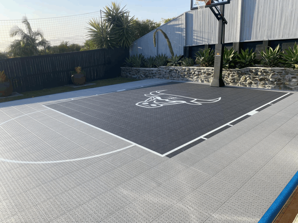 A multi-sport court is a modular tile sport surface installed over a compacted aggregate base or concrete pad. These courts can be lined for basketball, pickleball, tennis, ball hockey, volleyball, and general backyard play.
